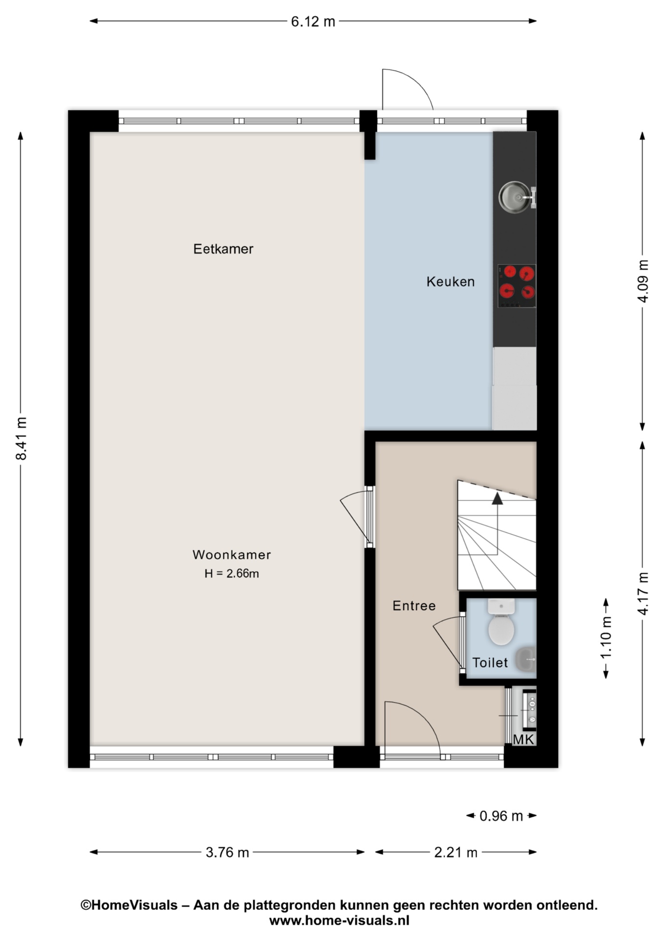 Op de begane grond de hal/entree met trapopgang en toiletruimte. Vervolgens de royale woonkamer met uitzicht over openbaar groen. Doordat de muur verwijderd is tussen de woonkamer en de keuken is de begane grond extra ruim en licht waardoor het hier heerlijk vertoeven is. De open keuken is vervolgens voorzien van inbouwapparatuur.
