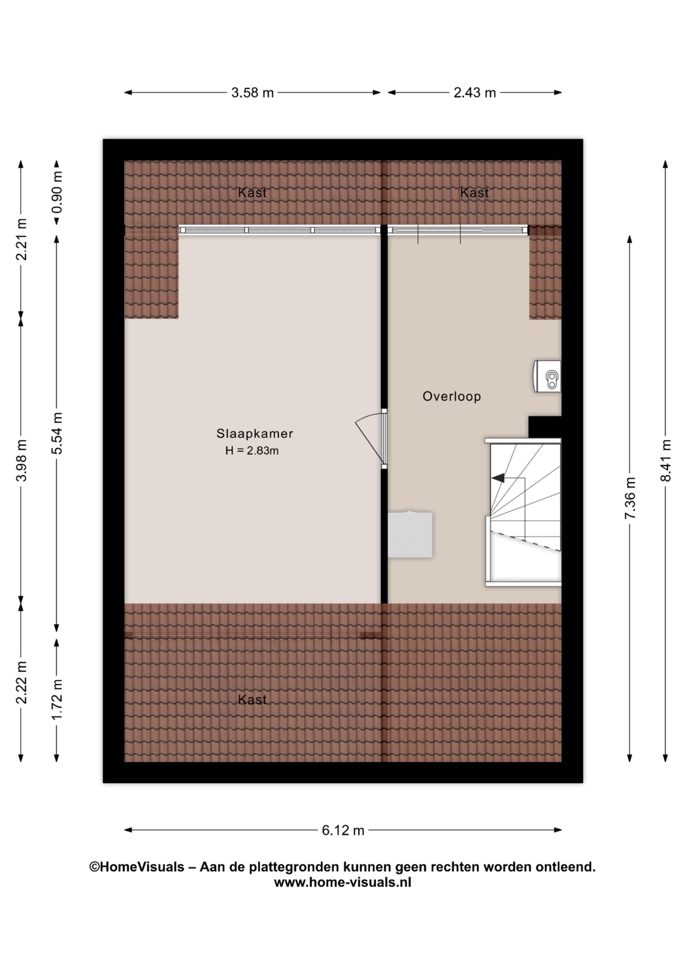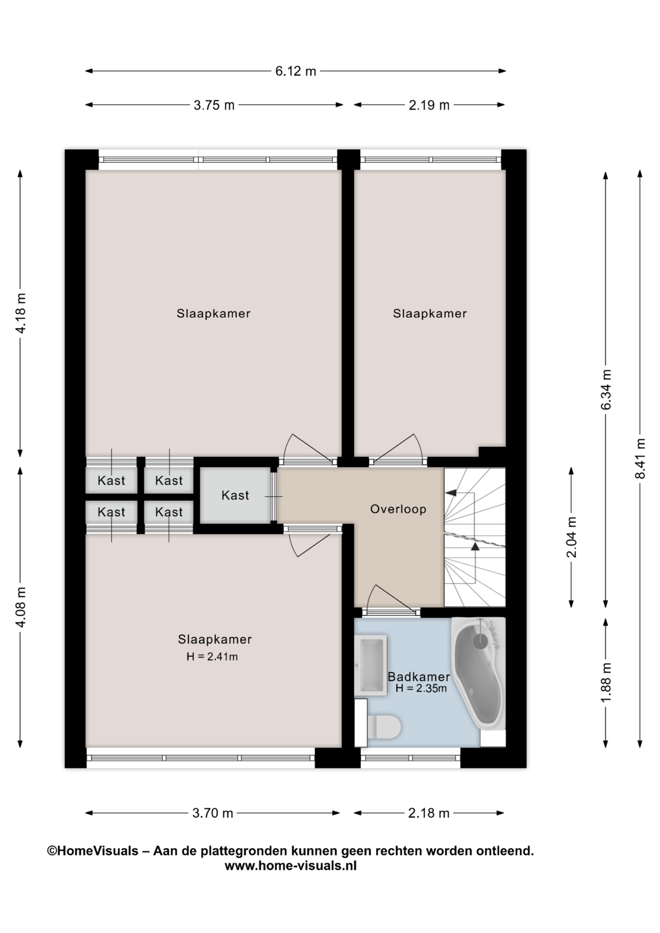 Op de tweede verdieping (bereikbaar middels vaste trap) wederom een overloop, hier bevind zich ook de aansluiting voor de wasmachine. Tenslotte een royale 4e slaapkamer met dakkapel.