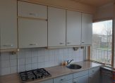 – dichte keuken met keukenblok v.v. oven, afzuigkap en gaskookplaat;