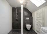 Op de 1e verdieping de overloop met vide, modern uitgevoerde badkamer (eveneens vernieuwd in 2018) voorzien van inloopdouche, 2e toilet, wastafelmeubel en wasmachine-opstelling, 2 slaapkamers.