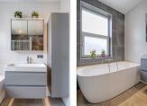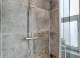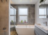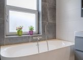 Eerste verdieping: Overloop met vaste trap naar de tweede verdieping. Drie slaapkamers. Badkamer voorzien van ligbad, inloopdouche, toilet en wastafelmeubel.