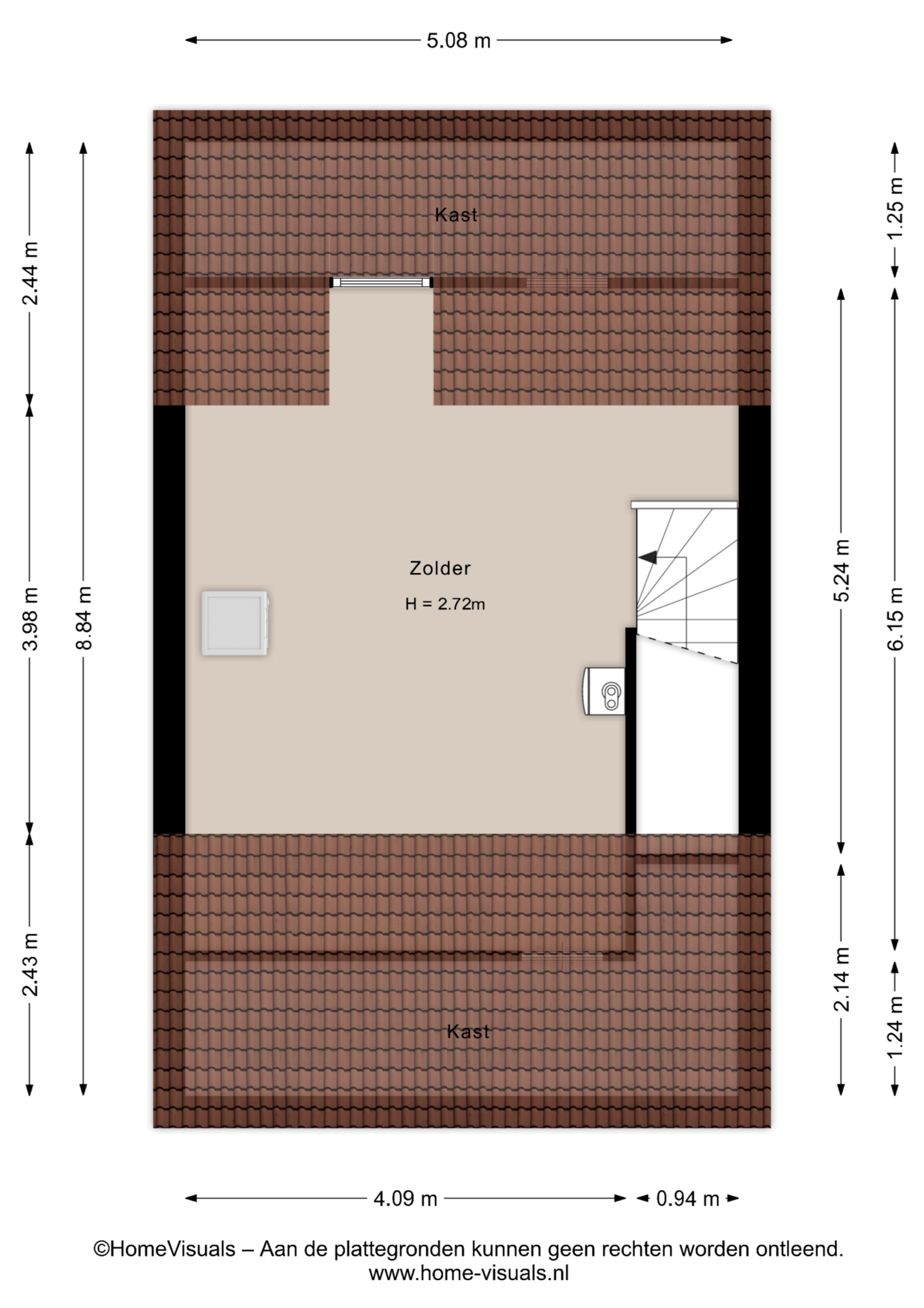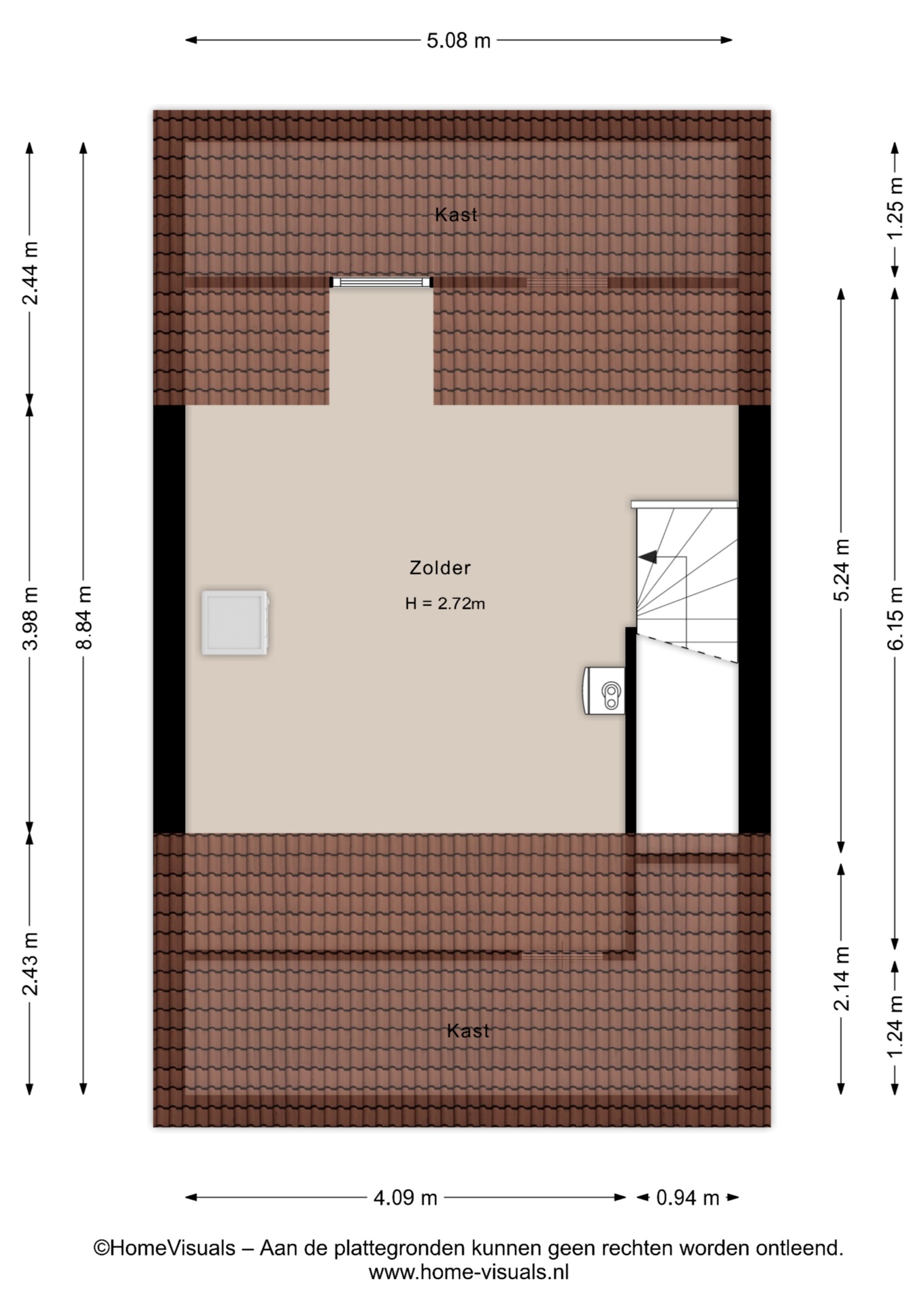 Tweede verdieping: Zolder te bereiken middels vaste trap, cv-installatie en witgoedaansluiting. Daarnaast is hier eenvoudig een vierde slaapkamer te realiseren.