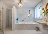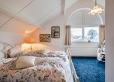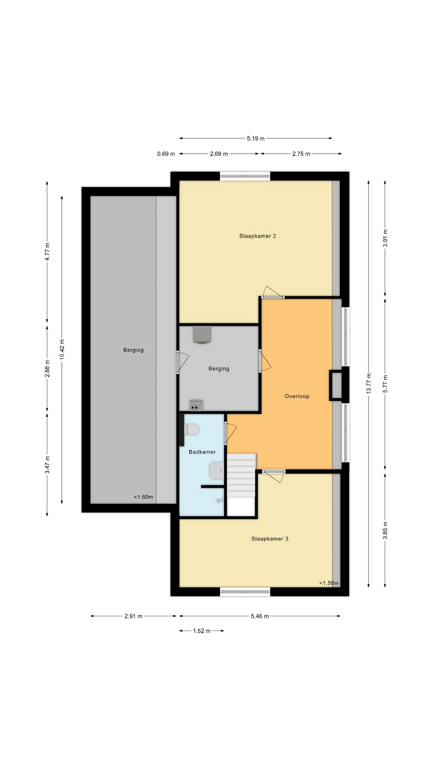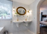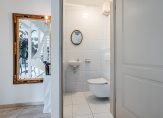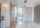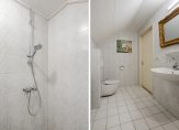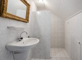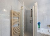 Eerste verdieping: Lichte overloop. Twee ruime slaapkamers. Badkamer voorzien van inloopdouche, toilet en wastafel. Berging/wasruimte met cv-installatie, omvormer en wasmachineaansluiting, extra opbergruimte.