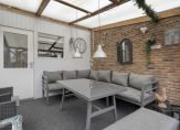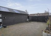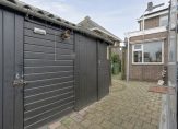 De voortuin is onderhoudsvriendelijk ingericht en biedt mogelijkheden voor het realiseren van een eigen oprit. Via de voor- en zijkant is er een praktische achterom naar de achtertuin. De achtertuin is tevens onderhoudsvrij aangelegd, gelegen op het oosten en beschikt over een overkapping die binnendoor via de bijkeuken bereikbaar is. Verder zijn er een houthok, een fietsenberging en een garage die via de achterzijde toegankelijk is, ideaal voor parkeren op eigen terrein.