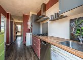 Indeling: entree/hal v.v. PVC vloer, toilet, woonkamer v.v. PVC vloer ca. 915×367, keuken met inbouwapparatuur en PVC vloer ca. 460×220.
