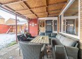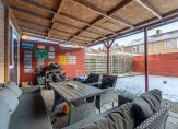 De tuin ligt op het zuiden en heeft een heerlijke overkapping voor als je op warme dagen de schaduw zoekt.