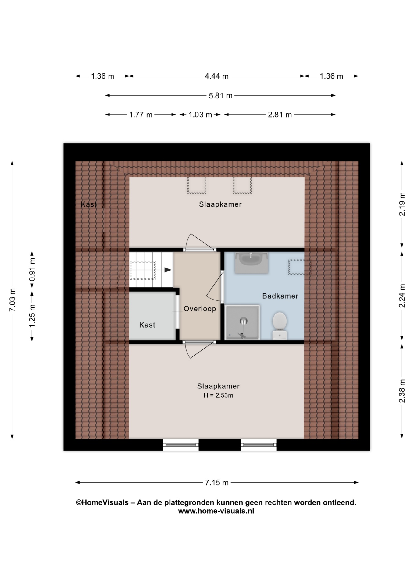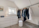 Op de verdieping geeft de overloop toegang tot twee slaapkamers. Daarnaast is er een praktische inloopkast, ideaal voor extra bergruimte. De badkamer is uitgevoerd met een douche, toilet en wastafel.