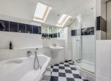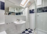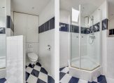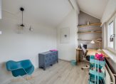 EERSTE VERDIEPING: Lichte overloop met vaste kast, mooie slaapkamer aan de voorzijde van de woning, centraal gesitueerde badkamer met royaal hoek ligbad, douchecabine, wandcloset, wastafel, designradiator en plek voor de c.v.-installatie die netjes is weggewerkt in vaste kast. De badkamer is uitgerust met 2 dakramen en vloerverwarming. De slaapkamer aan de achterzijde is uitgerust met een dakkapel.