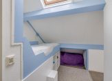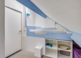 Ook de tweede verdieping is verrassend! Door de opgetrokken voorgevel tot en met de tweede verdieping zijn hier twee mooie slaapkamers aanwezig. De slaapkamer aan de achterzijde kan gebruikt worden als logeer of werkkamer en heeft een leuk bed met daaronder mooie opbergruimtes. Ook is er bergruimte achter de knieschotten aanwezig.