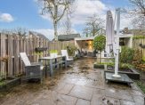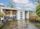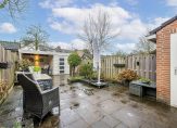 In de ruime en zonnige achtertuin geniet je al vroeg van de eerste zonnestralen. Kom je einde van de dag thuis dan is de veranda een heerlijke plek om in de avond na te kletsen of je even terug te trekken met bijvoorbeeld een goed boek. Naast de overkapping is de fietsenberging aanwezig en de achterom.