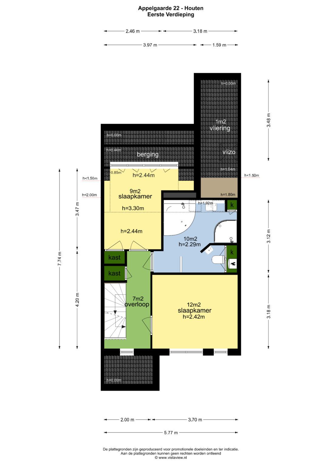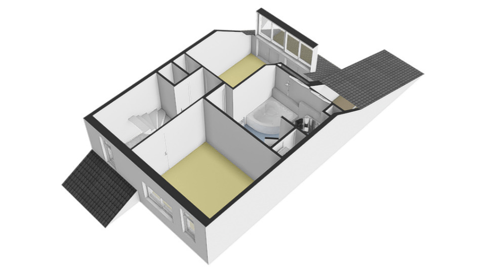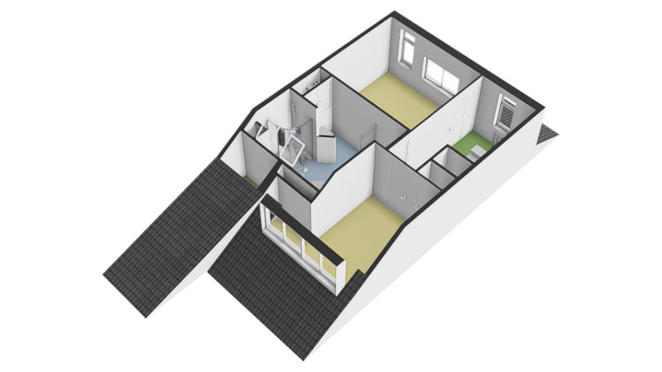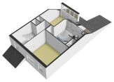 De slaapkamers op deze verdieping zijn 9 en 12 m2 groot. De badkamer is 10m2 groot.