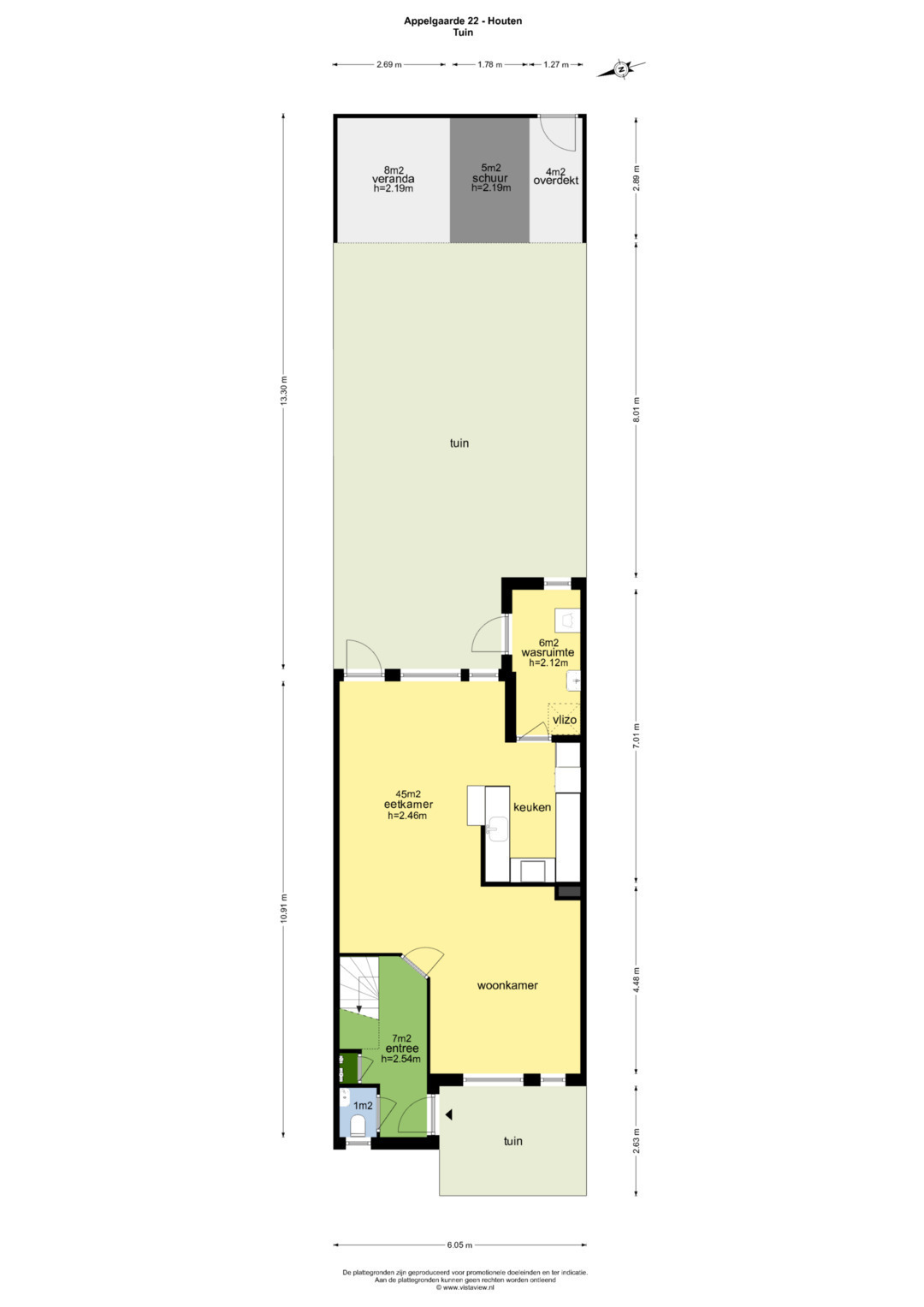 -De achtertuin is circa 13 meter diep;