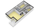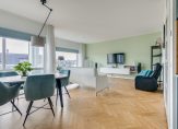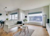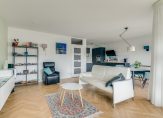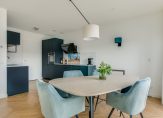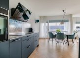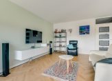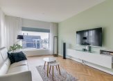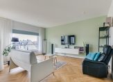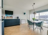 De woonkamer strekt zich uit over de volledige breedte van het appartement, ruim 7 meter, en vormt, samen met de moderne keuken, een royale leefruimte. Dankzij de grote raampartijen valt er de hele dag veel natuurlijk daglicht binnen. De woonkamer biedt volop ruimte voor zowel een gezellige zithoek als een royale eettafel.