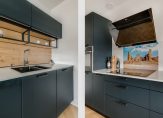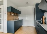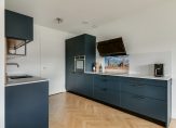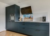 NEFF inductiekookplaat, NEFF oven, NEFF afzuigschouw, NEFF vaatwasmachine, AEG koelkast, 1 1/4e spoelbak en diverse lades en kasten.