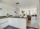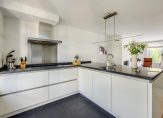 De ruim opgestelde keuken, die zich aan de voorzijde van de woning bevindt, heeft veel werkruimte door het brede en diepe aanrechtblad, mooie inbouwapparatuur en veel opbergmogelijkheden.