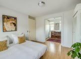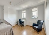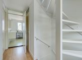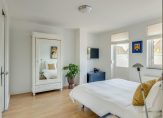 Grote ouderslaapkamer van 15 m2 met daarnaast de, via schuifdeuren bereikbare, kastenkamer van 9 m2. Deze kastenkamer is voorzien van schuifkasten maar kan ook weer teruggebracht worden naar de oorspronkelijke slaapkamer. Vanuit de slaapkamer toegang tot het zonnige dakterras van 18 m2 die is gelegen op het Westen.