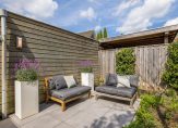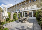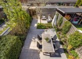 De dubbele tuindeuren geven je toegang tot de ruime achtertuin met meerdere terrasjes voor de ochtend-, middag- én avondzon! De tuin ligt zeer gunstig op het Westen waardoor je einde dag, na een dag werk, nog heerlijk kunt genieten van de zon. Wanneer je liever in de schaduw zit dan is er een elektrisch bedienbaar zonnescherm. De tuin is voorzien van een ruime houten berging en een achterom.
