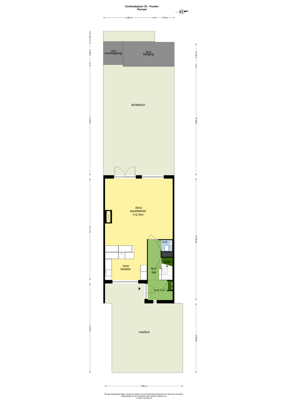 -Diepe achtertuin van 10 meter (exclusief berging);