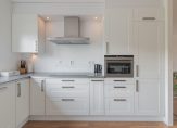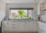 Ook de keuken is ruim van opzet! Deze bevindt zich aan de voorzijde van de woning en is voorzien van diverse inbouwapparatuur en veel opbergruimtes. Vanuit het keukenraam heb je leuk zicht de wijk in en kijk je weg over water en groenvoorzieningen. Door de breedte van de keuken plaats je hier eenvoudig een groter formaat eettafel.