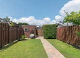 De achtertuin is keurig aangelegd met o.a. een terras aan de achtergevel, grasveldjes en een leuke plek bij de schuur. Naast de schuur is een praktische overkapping gerealiseerd voor het plaatsen van je fiets(en).