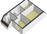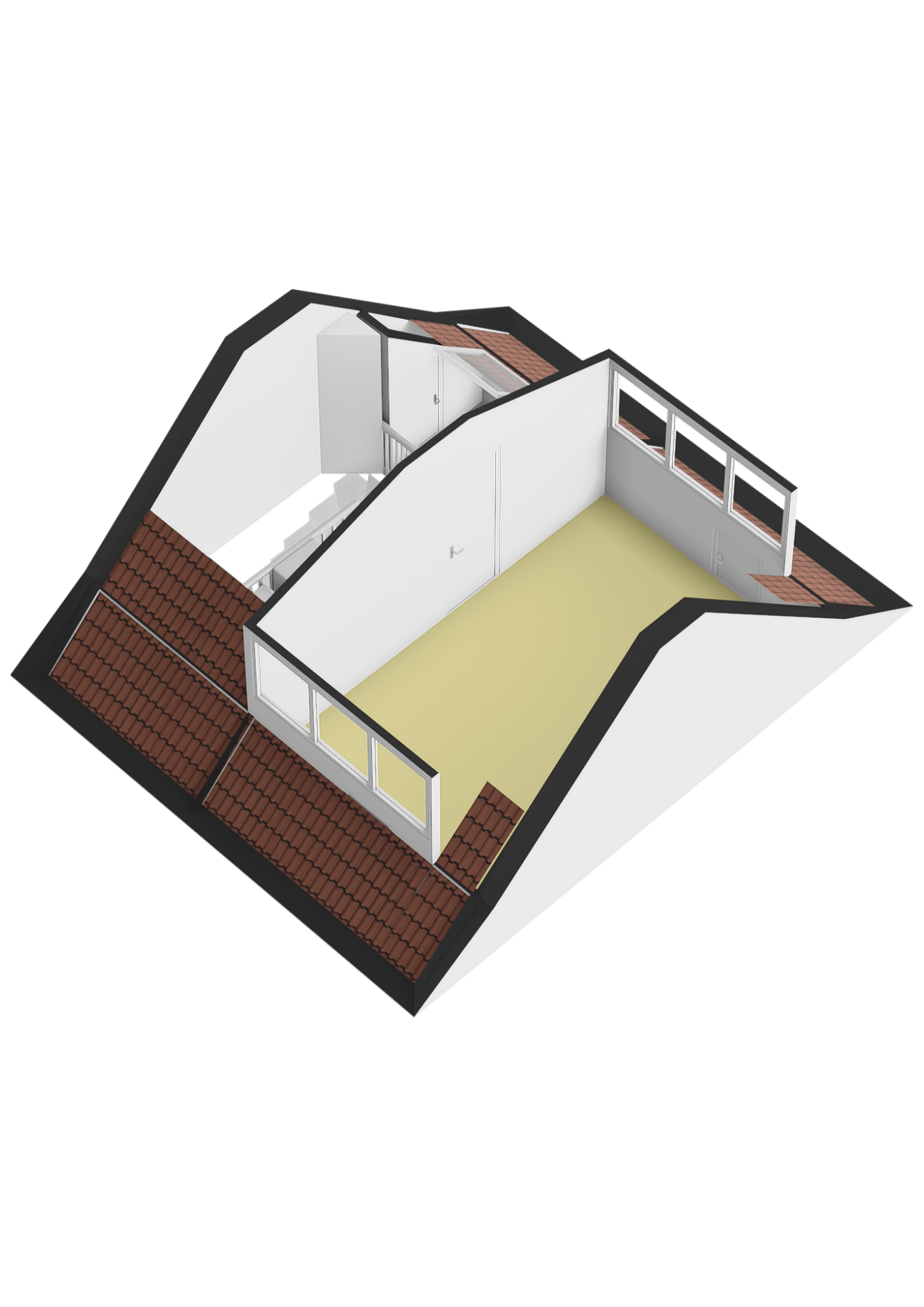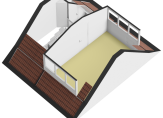 Deze verdieping heeft één grote slaapkamer met twee kunststof dakkapellen. Uiteraard kan deze slaapkamer opgesplitst worden in twee kamers. Ook de dakkapellen zijn uitgerust met screens (elektrisch). Opbergruimte is aanwezig achter de knieschotten.