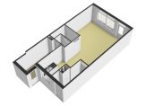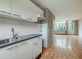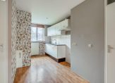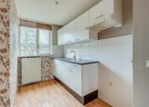 De keukenopstelling bevindt zich aan de voorzijde en betreft een keurig keukenblokje. Tuindeur naar achtertuin gelegen op het Zuidwesten. De begane grond is voorzien van een laminaatvloer.