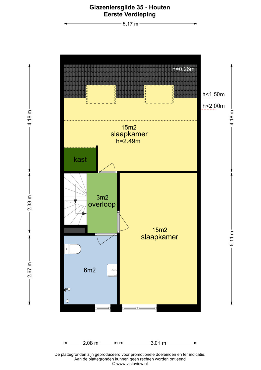 EERSTE VERDIEPING: Overloop, slaapkamer aan de voorzijde van de woning, slaapkamer aan de achterzijde met twee Velux dakramen. Meerdere woningen zijn hier voorzien van een dakkapel. De badkamer is voorzien van een douche, wastafel, opstelplaats wasmachine en een tweede toilet.
