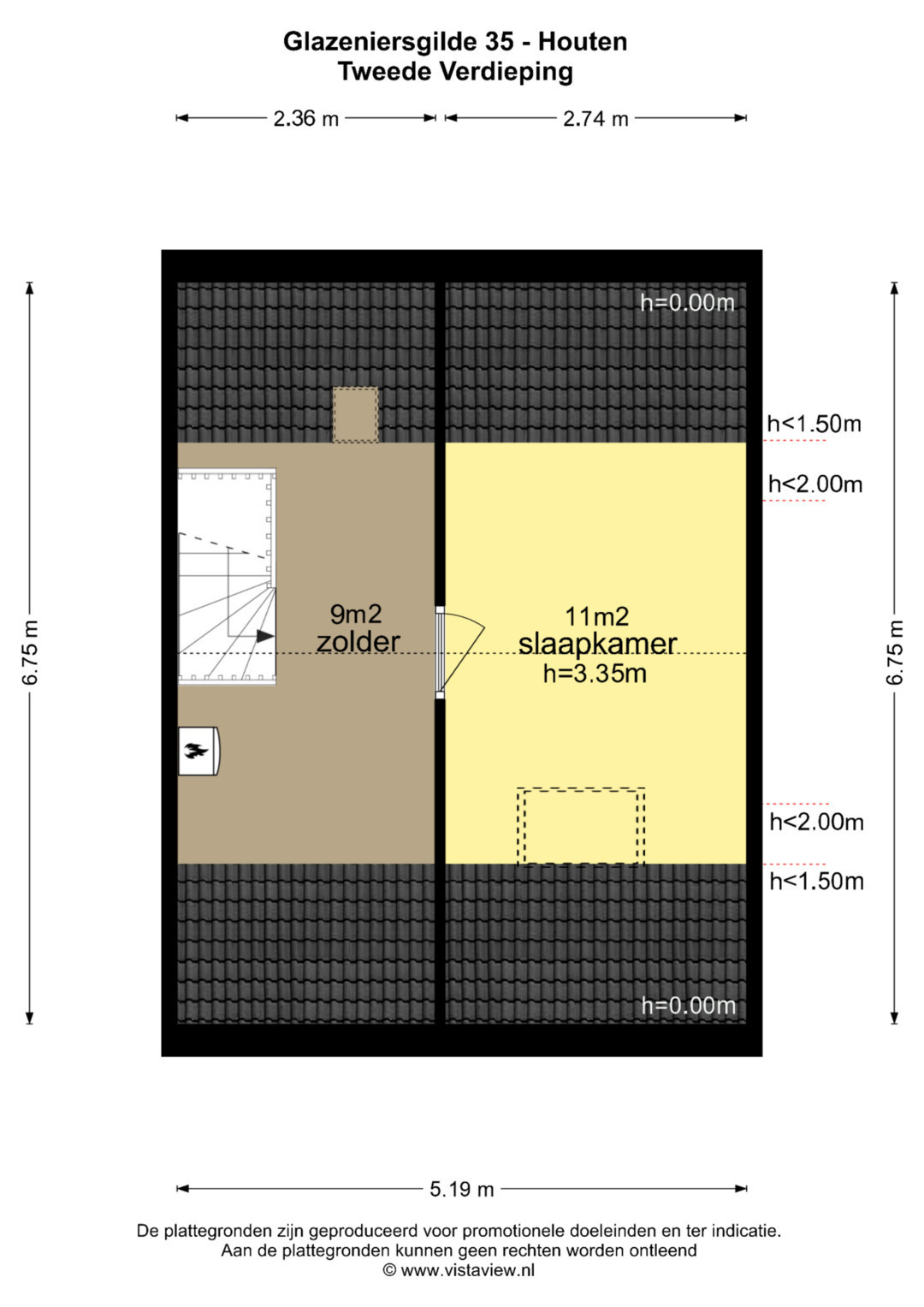 Op de zolderverdieping is de derde slaapkamer aanwezig die is voorzien van een groot dakvenster. Wil je de slaapkamer vergroten? Dat kan, ook hier is een dakkapel mogelijk, meerdere woningen hebben aan de voorzijde een dakkapel laten plaatsen. Op de voorzolder tref je de c.v.-ketel en mechanische ventilatiebox aan.