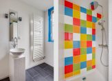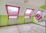 EERSTE VERDIEPING: Overloop, slaapkamer aan de achterzijde van de woning over de volledige breedte met twee Velux dakramen. Slaapkamer aan de voorzijde van de woning met mooi en vrij uitzicht over groenvoorzieningen. De keurige badkamer is voorzien van een inloopdouche, moderne wastafel, design radiator, wasmachine aansluiting en te openen raam.