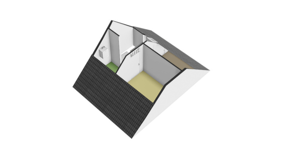 TWEEDE VERDIEPING: Open zolderverdieping met mogelijkheid tot realiseren slaapkamer. Bij de trapopgang bevindt zich de c.v.-ketel, de mechanische ventilatiebox en de opstelplaats voor je wasapparatuur.