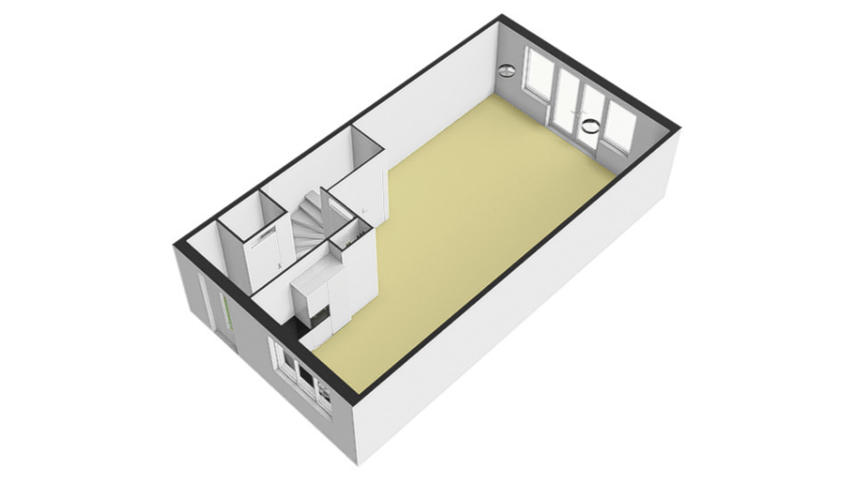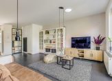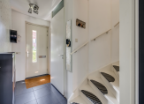 Toegang tot de optimaal uitgebouwde woonkamer met een mooie breedte van 5.70 meter en diepte van ruim 7 meter. Deze ruim 40 meter woonoppervlak is optimaal in te delen met een groot formaat eettafel en uitstekend zitgedeelte. De plafondhoogte van 2.63 m geeft een mooi en ruimtelijk effect! Naast de moderne woonkamerdeur bevindt zich de ruime en diepe trapkast die extra groot is door de ‘luie’ traptreden.