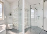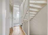 Licht en ruimte staan ook op de eerste verdieping centraal. Hier tref je de drie mooie slaapkamers aan en de complete badkamer. De tijdloos betegelde badkamer is uitgerust met een modern wastafelmeubel met dubbele kranen, designradiator, tweede w.c., een heerlijk ligbad en ruime inloopdouche. Doordat de badkamer beschikt over een raamkozijn geniet je ook hier van een natuurlijke daglicht toetreding. De afwerking op deze verdieping is ook weer zeer netjes, licht schilderwerk in combinatie met gladde muren, veel lichtinval en een houten vloer!