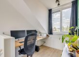 In 2018 is de zolder aangepakt en zijn er twee grote dakkapellen geplaatst. Tevens zijn er twee airconditionings geplaatst waardoor het hier in de zomermaanden dan ook zeer aangenaam blijft. De indeling is optimaal; een ruime voorzolder met een prima werkplek en ruimte voor je wasmachine – en droger. De twee slaapkamers zijn mooi van formaat en beiden 10 m2 groot. Opbergruimte is aanwezig achter de knieschotten.