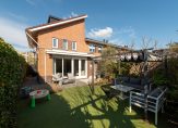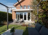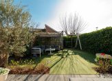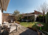 De tuin ligt zo goed als op het Zuiden waar je geniet van meerdere terrassen en op ieder moment van de dag heerlijk buiten kunt zitten, bij de achterpui of heerlijk bij de berging voor de avondzon.