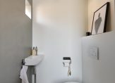 BEGANE GROND: entree/hal, moderne toiletruimte met wandcloset en fonteintje, garderobe, meterkast en trapopgang naar eerste verdieping.