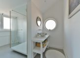 De tweede verdieping is optimaal ingedeeld waardoor er weinig te wensen over blijft. Je treft hier een mooie en lichte slaapkamer aan met vaste kastenwand en opbergruimte in de knieschotten. Ideaal voor logé’s of kinderen want naast deze slaapkamer is een zeer fraaie ruimte aanwezig met een wastafelmeubel, fraaie douchegelegenheid met regendouche en de opstelplaats voor de wasapparatuur. Deze mooie ruimtes maken allen gebruik van de extra brede dakkapel, uitgevoerd in kunststof, die zorgt voor veel extra ruimte en lichtinval.