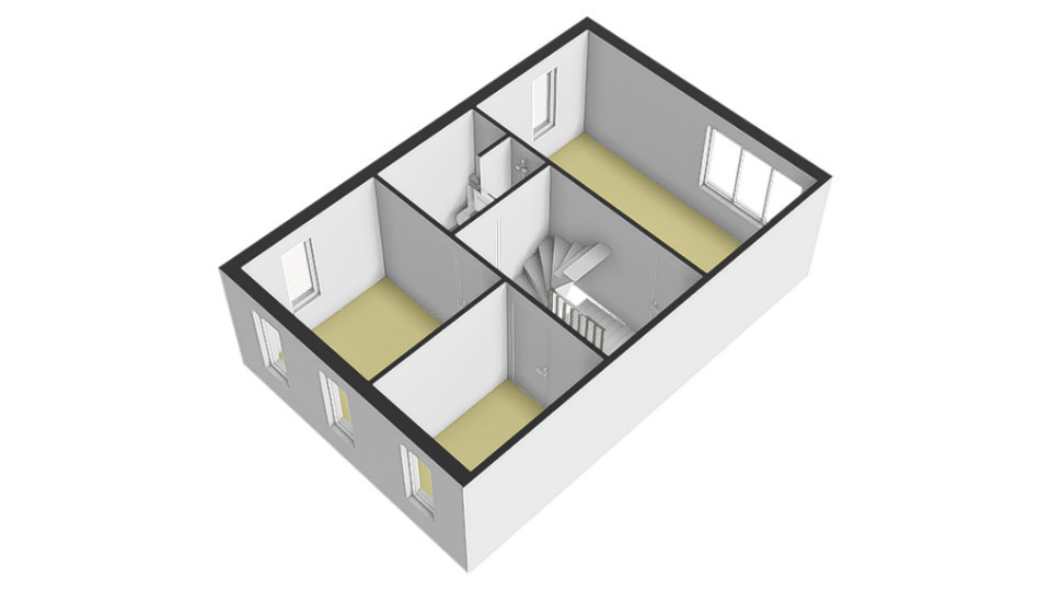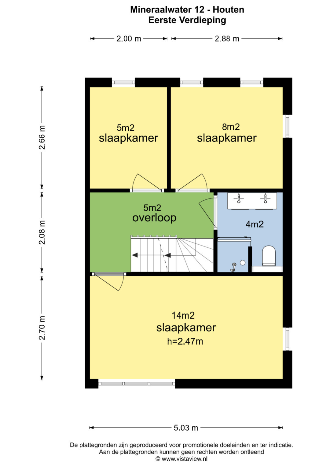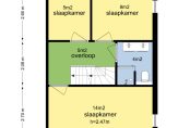 EERSTE VERDIEPING: overloop, twee slaapkamers aan de achterzijde van de woning met afmetingen van 2.06m x 2.66m; 2.88m x 2.66m en de ruime ouderslaapkamer aan de voorzijde van de woning van 5.02m x 2.89m.