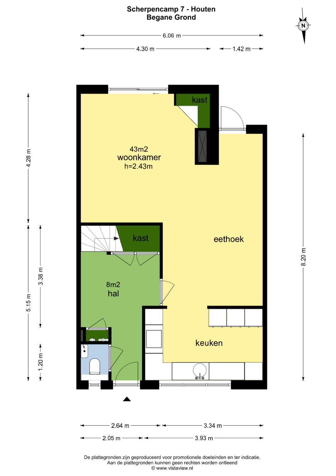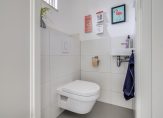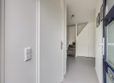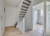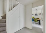BEGANE GROND: entree, royale hal met moderne toiletruimte met wandcloset en fonteintje, garderobe met vaste trapkast, trapopgang en toegang tot de woonkamer.