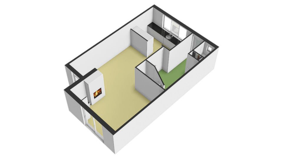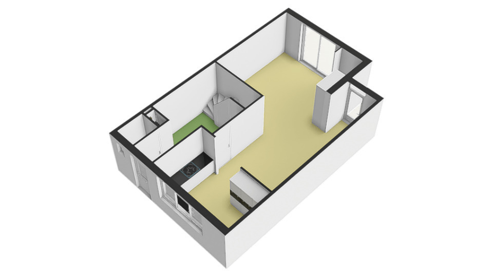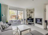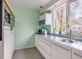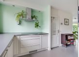 Aan de voorzijde van de woonkamer de moderne en lichte keukenopstelling met de volgende inbouwapparatuur: oven, vaatwasmachine (2019), close-in boiler, inductie kookplaat, afzuigschouw, spoelbak, pannenlades, carrouselkast en diverse kastruimten. Het ingebouwde koffiezetapparaat en de magnetron dienen vernieuwd te worden.