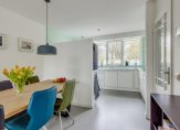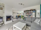 Aansluitend aan de keukenopstelling een mooie plek voor het plaatsen van je eettafel en de speelse woonkamer met leuke zithoek en open haard, schuifpui (2019) en tuindeur met toegang tot de diepe achtertuin met eigen parkeerplaats, grote houten berging en een achterom.