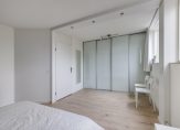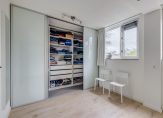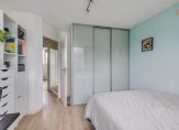 EERSTE VERDIEPING: overloop, slaapkamer voorzijde van 13 m2 met vaste kast en de zeer royale slaapkamer aan de achterzijde van 21 m2 met eveneens een grote vaste kastenwand. De slaapkamer aan de achterzijde kan eenvoudig weer worden teruggebracht naar de originele indeling met twee slaapkamers.