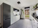 De ruimte die je bij deze woning binnen aantreft zal zeker aanspreken! Door de mooie breedte van bijna 5.40 meter geniet je, in combinatie met de gerealiseerde uitbouw, van een prachtige woonkamer met vele indelingsmogelijkheden. Niet alleen de ruimte is fantastisch; aan comfort en sfeer ontbreekt het hier zeker ook niet; de mooie gashaard draagt, in combinatie met de houten vloer, in de wintermaanden bij aan een prettige sfeer. De dubbele tuindeuren met zijramen zorgen voor een mooie lichtinval en toegang tot de op het Westen gesitueerde achtertuin. In deze achtertuin is het heerlijk vertoeven; de kinderen kunnen zich prima kunnen vermaken op groenzone voor de woning met enkele speeltoestellen. In de achtertuin heb je de beschikking over een houten berging met een overkapping. Deze berging is ideaal voor motorrijders of ouders met een bakfiets; door de gerealiseerde elektrische overheaddeur parkeer je hier op eenvoudige wijze je tweewieler!