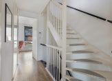 Entree/hal, meterkast met glasvezelaansluiting, toiletruimte met wandcloset en fonteintje, trapopgang naar de eerste verdieping.
