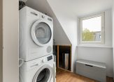 Voorzolder, overloop, toegang tot wasruimte die profiteert van aanwezig dakkapel, c.v.-ketel (Vaillant combiketel), mechanische ventilatiebox en opstelplaats voor de wasapparatuur.
