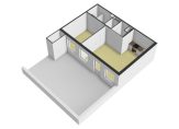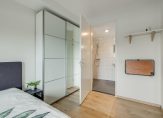 De slaapkamer is 10 m2 waar een grote kledingkast kan staan. De badkamer is vanuit de slaapkamer bereikbaar en heeft een inloopdouche, wastafel, wasmachine – en drogeropstelling, boiler en is voorzien van elektrische vloerverwarming.