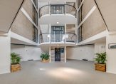 Je bereikt het appartement via de indrukwekkende en markante hal van het complex, hier tref je de brievenbussen met beltableau en liftinstallatie aan. Parkeren doe je op eigen terrein, hier is ruim voldoende (gratis) parkeergelegenheid. Naast het complex is een grote en overdekte fietsenberging aanwezig.