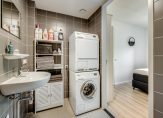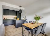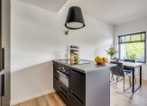 De woonkamer beschikt over een gezellige zithoek, een trendy keuken voorzien van kookeiland en inbouwapparatuur en plek voor je eettafel. Het kookeiland heeft plek voor het plaatsen van barkrukken, waardoor het koken extra gezellig wordt! Vanuit de woonkamer bereik je het extra brede balkon met een oppervlak van bijna 12 m2! Naast de woonkamer bevindt zich de slaapkamer van 10 m2 en de modern betegelde badkamer met vloerverwarming, inloopdouche, wastafel en de opstelplaats voor je wasmachine en droger. De toiletruimte is bij dit appartement gesitueerd in de hal bij de ingang van de woning. Ook deze is modern en voorzien van een wandcloset en fonteintje.