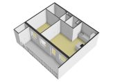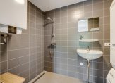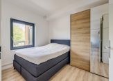 De slaapkamer is 10 m2, met ruimte voor je grote kledingkast! Deze slaapkamer beschikt over een draai-kiep raam. De modern betegelde badkamer is vanuit de slaapkamer bereikbaar en heeft een inloopdouche, wastafel, wasmachine – en drogeropstelling, boiler en is voorzien van elektrische vloerverwarming.