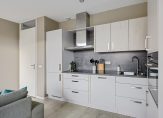 De woonkamer is voorzien van een gezellig zitgedeelte en een moderne keuken voorzien van inbouwapparatuur. Vanuit de woonkamer en de slaapkamer heb je toegang tot het tuintje.