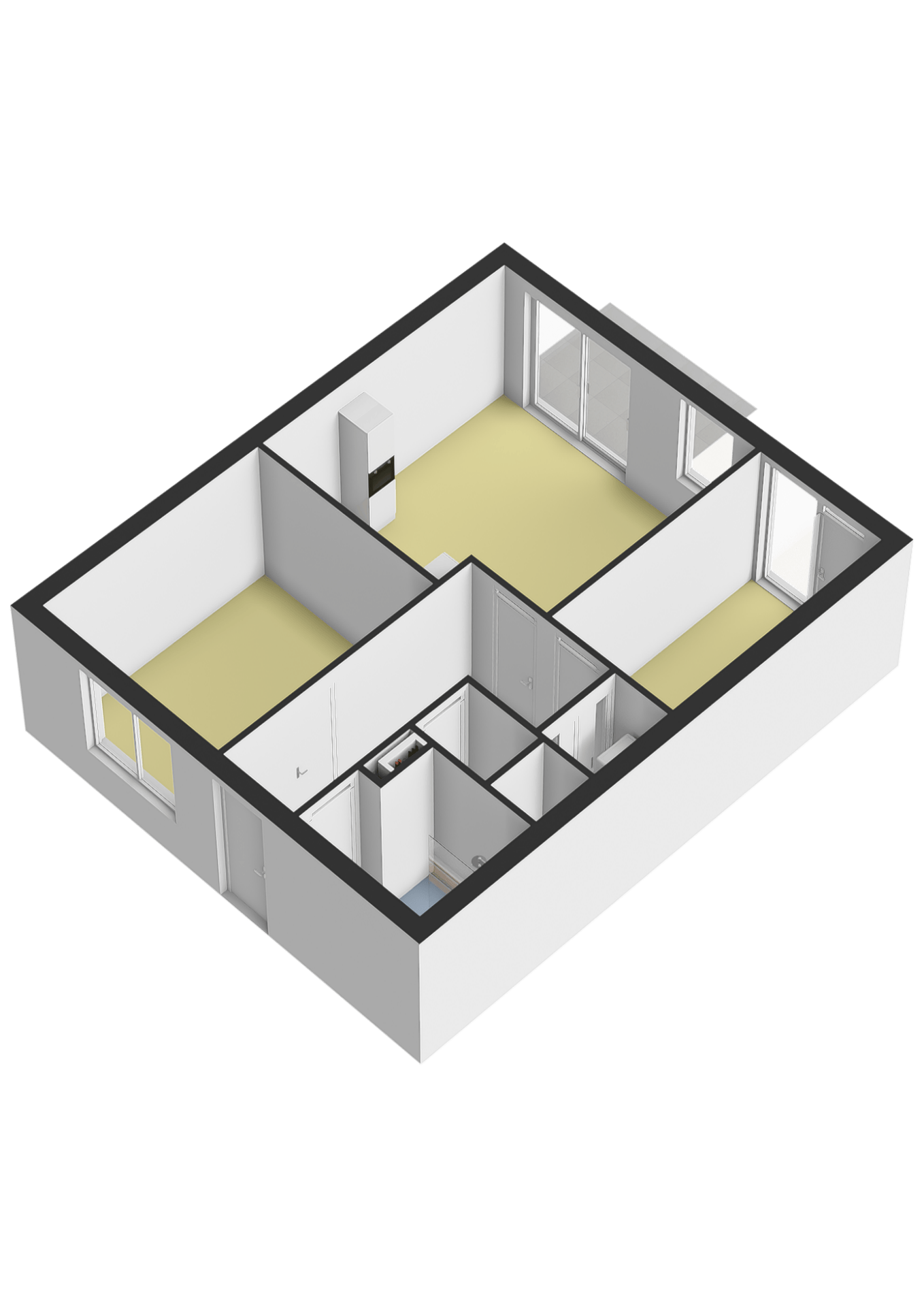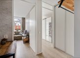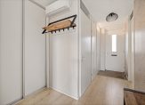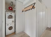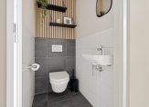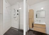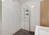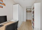 Entree/hal, gang, toegang aan de linkerzijde tot de slaapkamer van 3.31m x 3.80m, aan de rechterzijde de badkamer met wastafel en inloopdouche met glazen wand. Meterkast met glasvezel aansluiting, moderne toiletruimte met wandcloset en fonteintje. Hal waar de airconditioning unit is opgehangen, bergkast waar je de wasapparatuur kunt plaatsen met C.V.-ketel en mechanische ventilatie box. Mooie tweede slaapkamer van 2.14m x 4.56m met draai-kiep-deur.